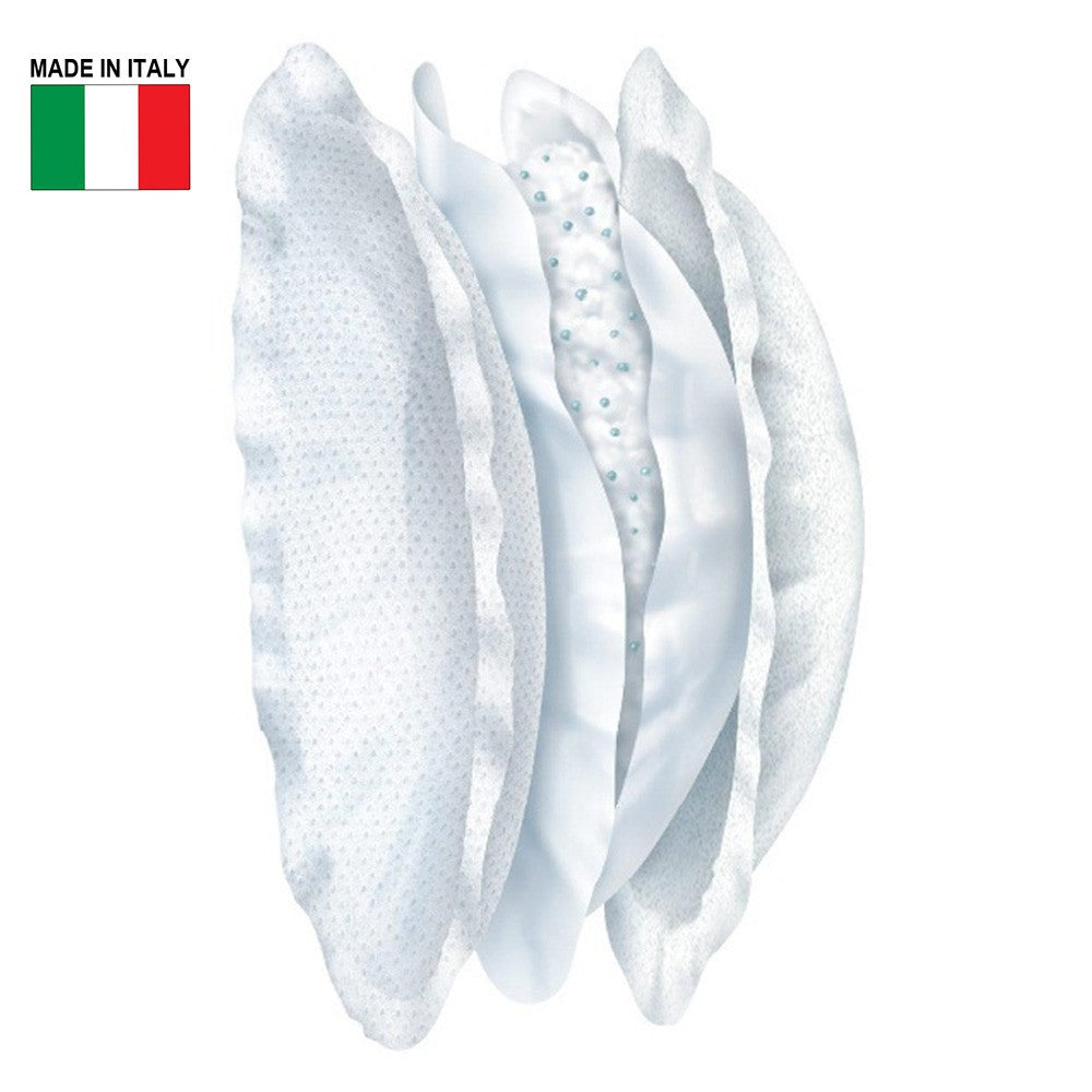 During Breastfeeding, especially in the most delicate, initial phases, annoying soreness and irritations to the breasts can make Breastfeeding difficult and painful. This means they need particular care and hygiene. The special Antibacterial Fabric prevents the proliferation of bacteria inside the cup, while providing an appropriate mechanical barrier for protecting the breast. The super absorbent Micro-Pearls retain liquid and prevent it from seeping out to the surface, always keeping the skin dry. The external breathable layer allows the nipple and skin to breathe and prevents irritation.
