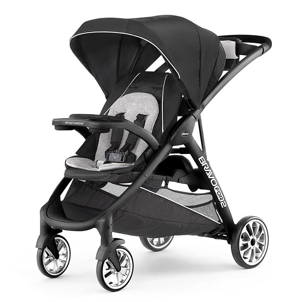 The Chicco Bravo For 2 Stroller Limited Edition is the ultimate standing/sitting double stroller designed for growing families with two children. This Limited Edition (LE) version elevates the standard model with premium fabrics, a reversible knit/mesh seat liner for all-season comfort, and a sophisticated aesthetic. Whether you have an infant and a toddler or two on-the-go kids, this stroller provides versatile riding options without the bulk of a traditional double stroller.