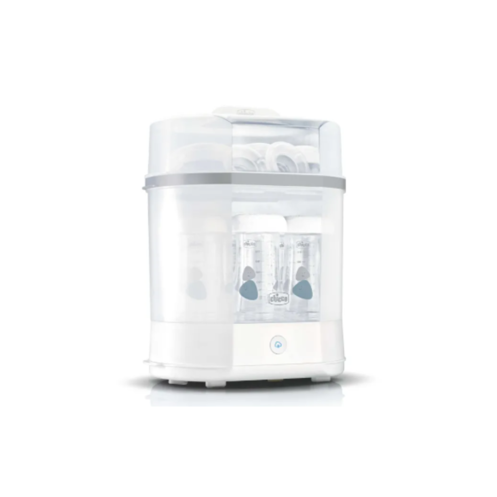 - The Chicco 3-in-1 Electric Steam Sterilizer is a versatile and chemical-free solution designed to eliminate 99.9% of harmful household germs using natural steam. Its modular design allows it to adapt to different needs, saving both time and kitchen space.